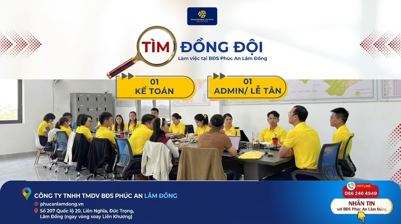 Nếu trong bạn vẫn còn khao khát thay đổi và bứt phá, thì đây chính là lúc bạn nên tìm cho mình một bến đỗ mới. Công ty BĐS Phúc An Lâm Đồng đang mở rộng cửa chào đón những người đồng đội có cùng chí hướng.